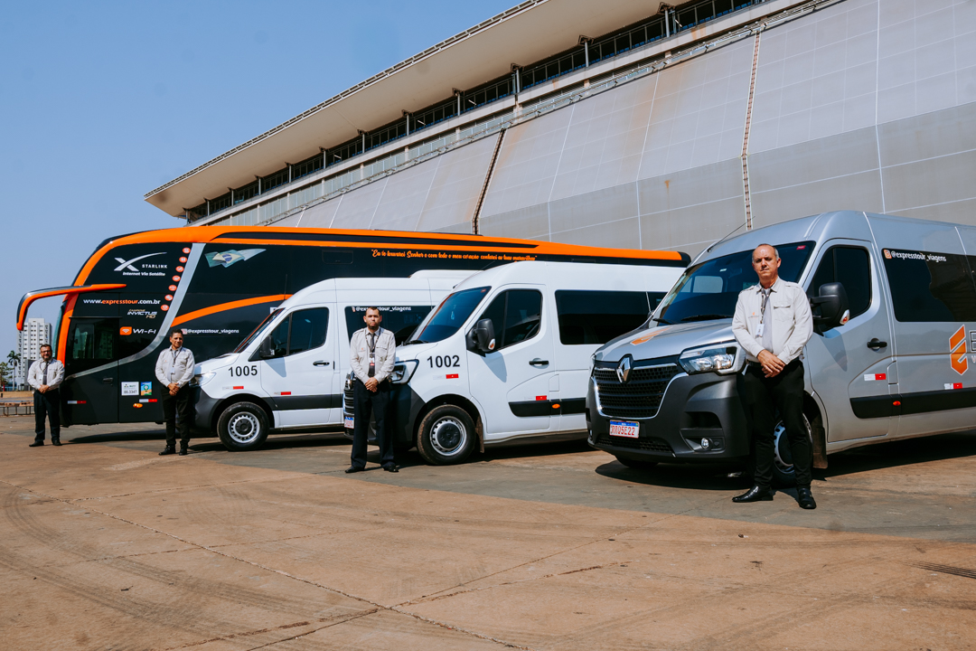 Conheça o ápice do conforto e segurança em nossa frota. Tecnologia de ponta, assentos ergonômicos, ar-condicionado eficiente. Uma experiência única em viagens. Design moderno, monitoramento e motoristas treinados para segurança. Experimente o melhor em mobilidade conosco.